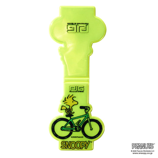 はさんで 使うリフレクター!PEANUTS デザインのマグネットリフレクターの第2段が発売しました!自転車に乗ったスヌーピー、ウッドストックのデザイン2種 楽しいデザインでお出かけにピッタリ! 通勤、通学、お散歩、スポーツに、いろんなシーンで。光で反射するリフレクター、はさんで簡単に付けれるから便利だよ。